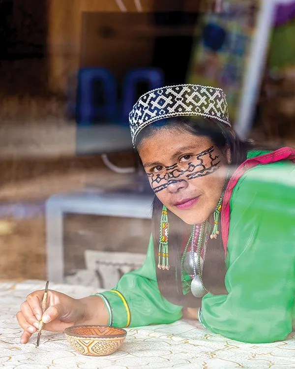 Sadith Silvano is an artist, designer and activist from the Shipibo community of Cantagallo, in Lima, Peru. She is a cultural promoter and an active member of the Shipibas Women Muralists artist collective. She completed the Expert on Indigenous Peoples, Human Rights and International Cooperation course at the Carlos III University (Madrid, Spain), after being awarded a scholarship from the Fund for the Development of Indigenous Peoples of Latin America and the Caribbean). Her work has been exhibited at the Pacho Fierro Municipal Gallery, the Fine Arts Cultural Center, the Impromptu Gallery and the Metropolitan Museum of Lima, among others.
