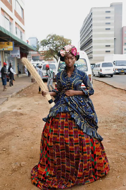 Photographer Tamary Kudita’s powerful portraits aim to retell and recentre the often obscured histories of Zimbabweans and other African cultures. Drawing from fabrics and mixing African and European histories, she uses fantastical imagination to explore identities.