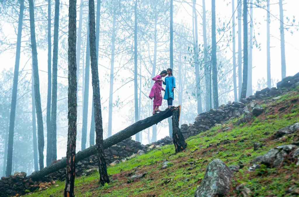 In lush pine forests, beneath a blanket of mist, we would walk for miles together, giggling and confiding in each other. Together we went to all of their secret hideouts, spending mornings and evenings roaming aimlessly. Manisha is bold and beautiful, with almond-shaped eyes, while Babita is comparatively shy and quiet. I began to photograph their playfulness, the precious moments of friendship, and their relationship with the forest that surrounded them.