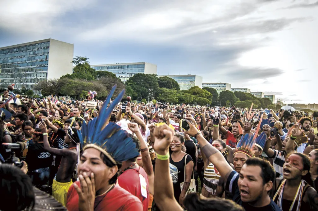 SG: The APIB is the largest Indigenous organisation in the country and every year in Brasilia we hold the main assembly, which we call the Acampamento Terra Livre (Free Earth Camp). We talk about defending rights, but it’s more than that, it’s about defending our lives. The Indigenous movement’s main model of struggle is the struggle for land, but we don’t just campaign for the right to land and the ratification of reserves, we also fight for the strengthening of Indigenous women’s rights. We aim to bring together and mobilise people and organisations across the country against threats and attacks on all Indigenous rights.