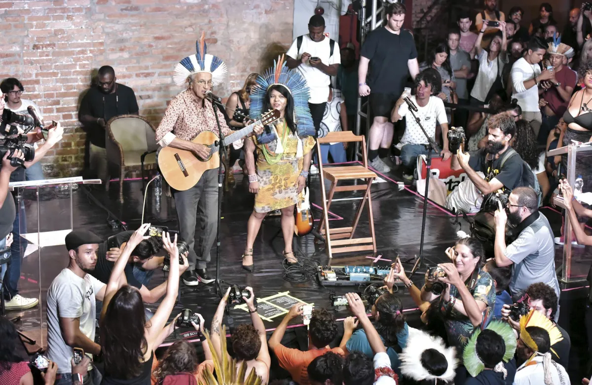 CAETANO VELOSO AND SÔNIA GUAJAJARA DURING THE 2018 PRESIDENTIAL CAMPAIGN.