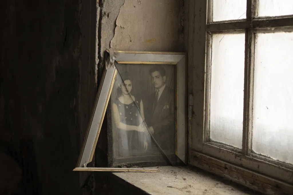 Fawzy appears again, now an adult, swimming in 1996 - accompanied by his letter, in which he recalls getting distracted by the call of the sea on his way to work every day. Um Karam, pictured on her wedding day in 1991, recalls her pre-demolition home in her letter: “I remember the tree we planted in front of our house and how each day when I would wake, I would sit under its shade and recite the Quran. The birds and the pigeons would gather around me. It was another world. It was my heaven. After the demolition we would look through the destroyed bricks and find things we had forgotten about.”