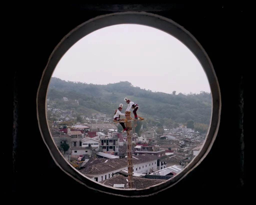 I’m particularly interested in Luongo’s project, When Women Fly (Aquí las mujeres también vuelan). In it, she photographs the Danza de los Voladores (Dance of the Flying Men), an ancient Mesoamerican ritual still performed today by the community in Cuetzalan del Progreso, Mexico. This traditionally excluded women, but Luongo instead turns her lens to the growing number of women who are participating. The ritual, as the photographer explains, “begins with a ceremonial dance. The 5 participants then ascend a 30-metre pole and jump off the top, head first, tied to ropes as they revolve around the pole towards the ground.” With the photographs, Luongo says, “I hope to celebrate the daily lives of the flying women of Cuetzalan and show their balance between being mothers, sisters, daughters, workers but also proud voladoras.”