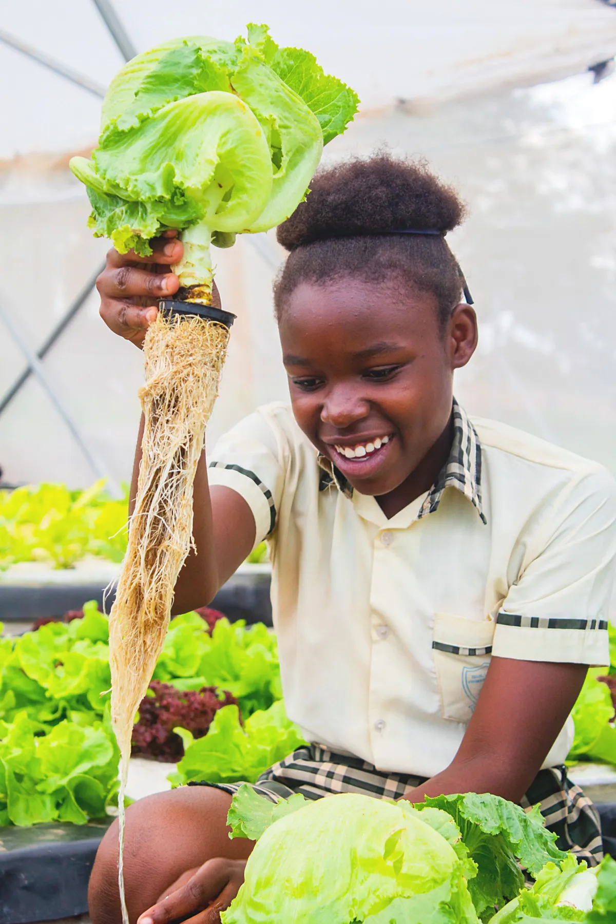 anything. The plants are growing in the water, and this water has the appropriate nutrients. We use commercial hydroponic fertilisers, and although this is not always readily available, we are developing locally available solutions.