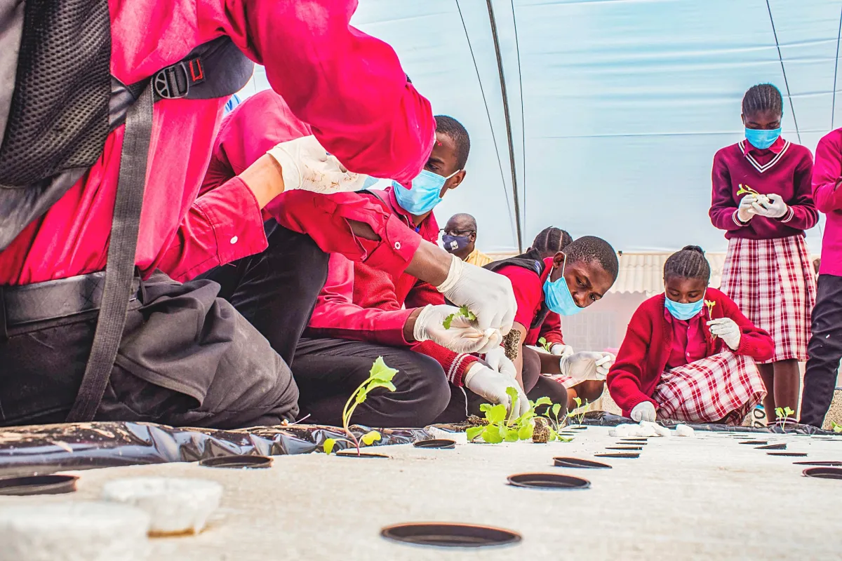 At schools where the facilities are good, we have set up both systems. At schools in rural areas, where the facilities are not reliable, we have resorted to the grain bag planting system, which is not a hydroponics system. It’s another controlled form of cultivation with soil in a grain bag. Before we use the soil, we treat it to kill whatever germs the soils could be having and then amend it with biochar (charcoal dust) and organic fertiliser. Charcoal dust is everywhere here in Zambia because is the main source of energy for cooking. Biochar’s advantage is that it maintains the soil pH and retains water.