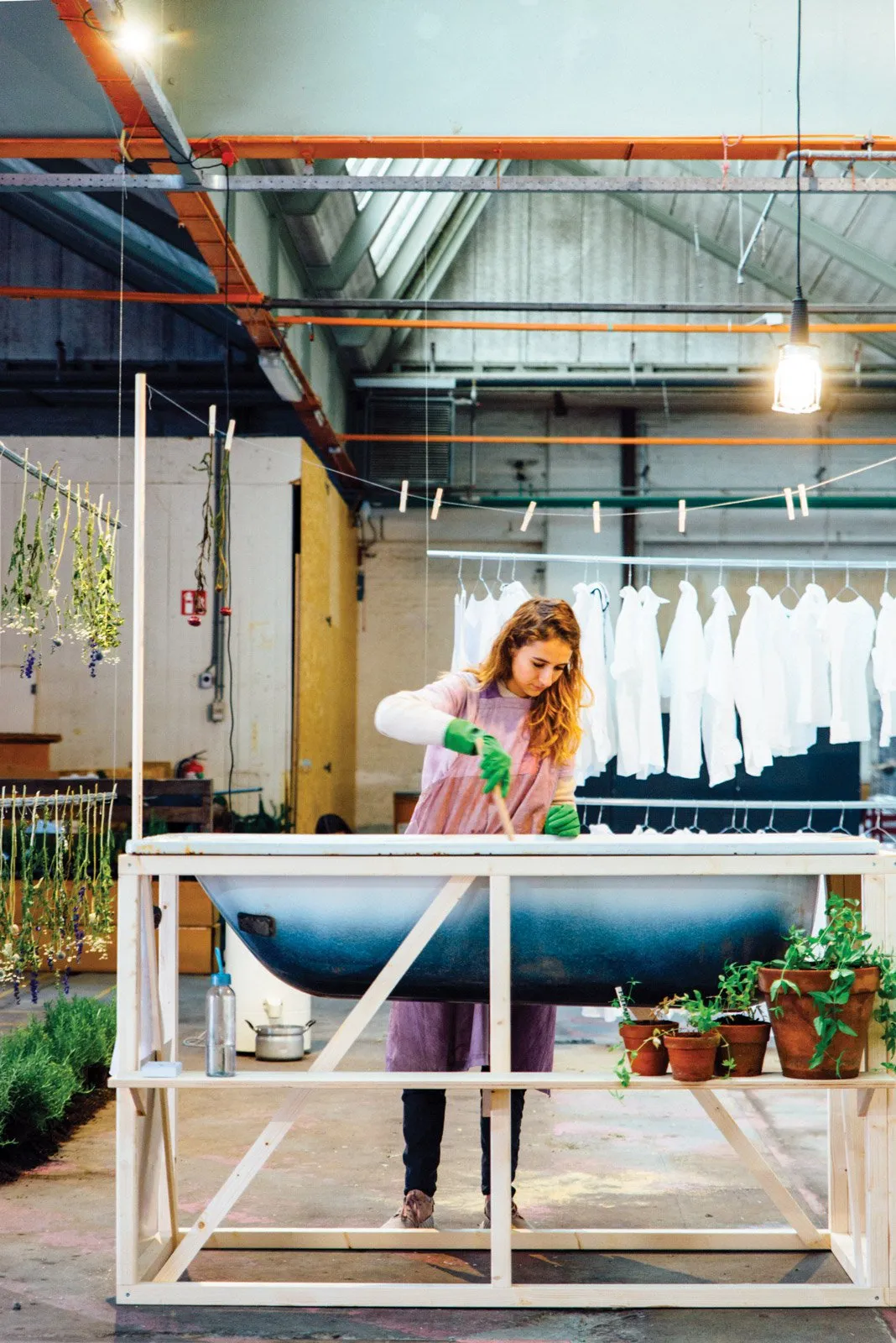 Dutch designer Nienke Hoogvliet’s research revealed that many textiles contain harmful chemicals that can cause a variety of disorders and diseases. Her line of research led her to ask the questions: Can textiles also release substances that can be beneficial to our health and skin? Would herbs have beneficial effects when used as textile dye? PhotoGRAPH COURTESY STUDIO NIENKE.
