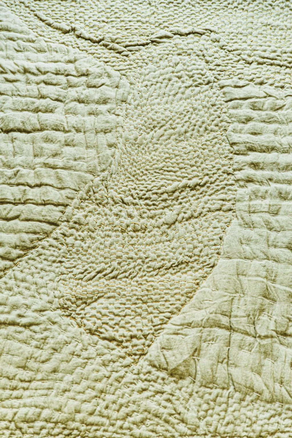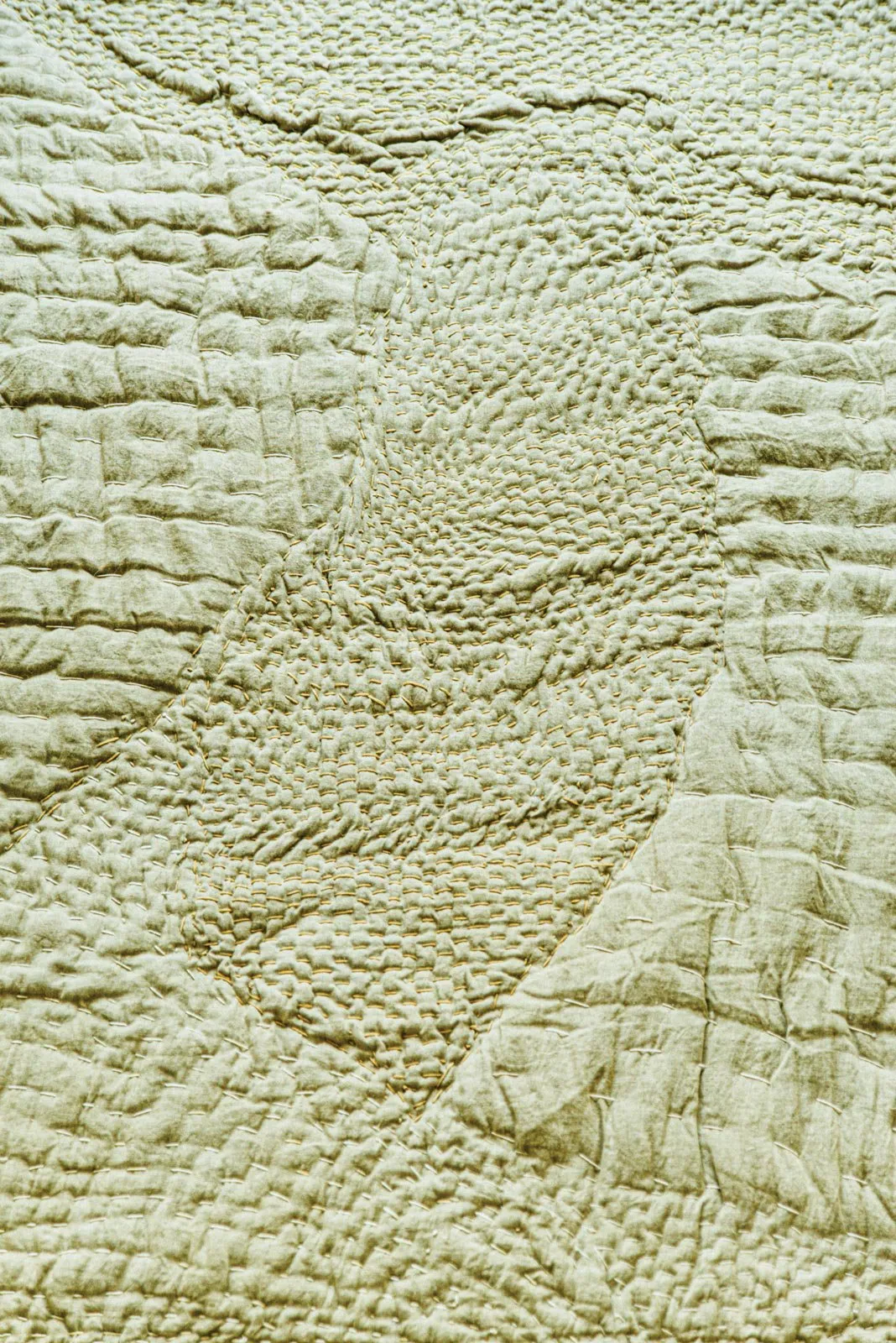 The use of plant-based dyes in traditional textiles has been well-documented, encompassing a range of vibrant colours from cochineal red to indigo blue. However, various Indigenous groups across India have gone beyond mere aesthetics and incorporated plant-based dyes for their health-related properties. Turmeric and neem, for example, possess antibacterial and antimicrobial qualities, offering added health benefits and protection to garments. Inspired by this practice, which both preserves cultural heritage and showcases Indigenous traditions, Dutch designer Nienke Hoogvliet found that many textiles are depleted with harmful chemicals. In response, she created H.E.R.B.S., a quilt made from pesticide-free European linen. Using rosemary, sage, and chamomile as natural dyes, her project explores the potential release of beneficial substances for the wellbeing of both skin and health.