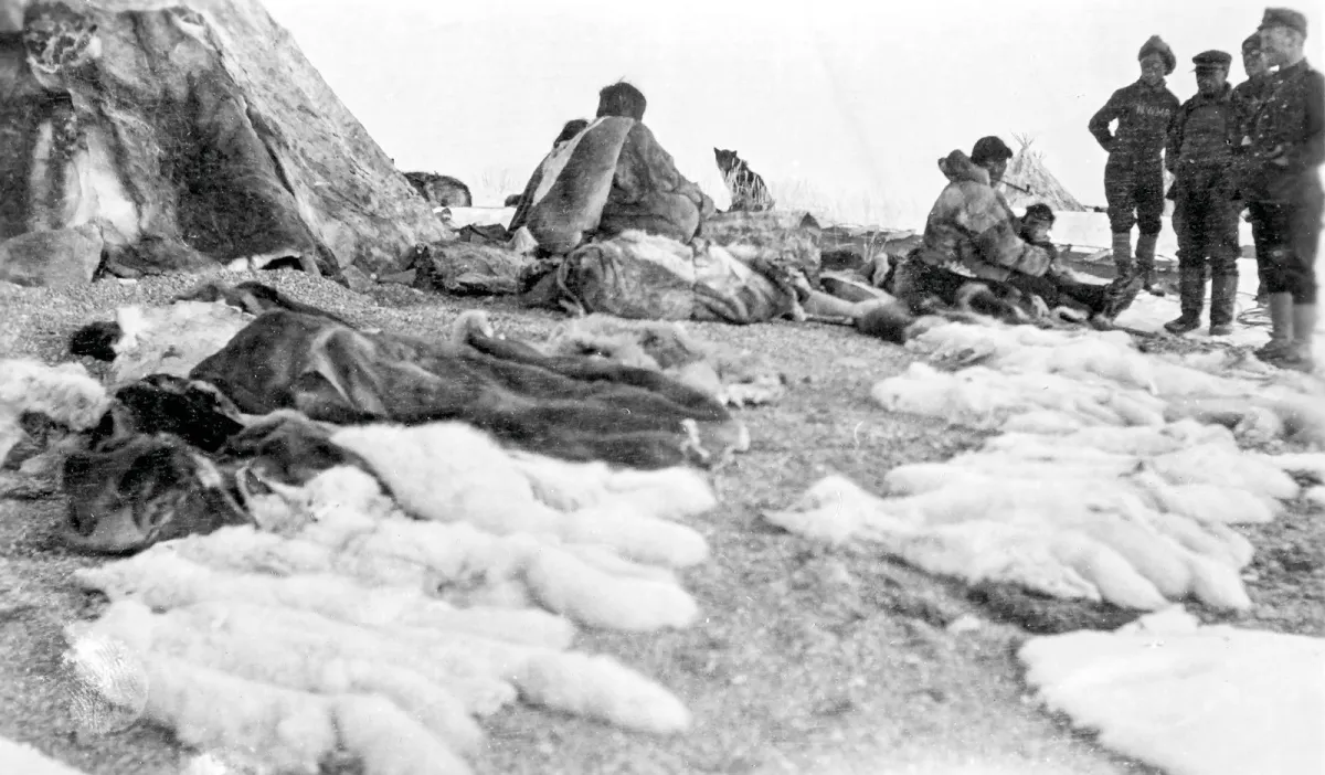 AN INUIT CATCH OF WHITE FOX, AKLAVIK, NORTHWEST TERRITORIES. LIBRARY AND ARCHIVES CANADA/ROYAL CANADIAN MOUNTED POLICE FONDS/E006581074