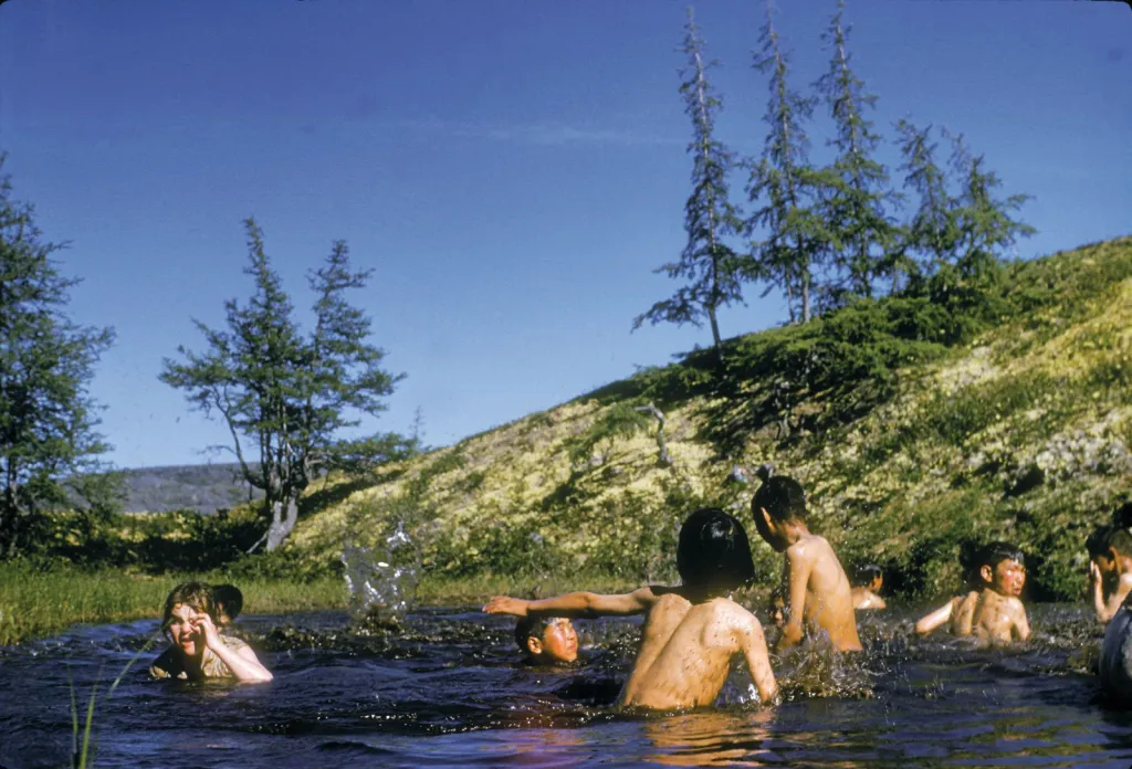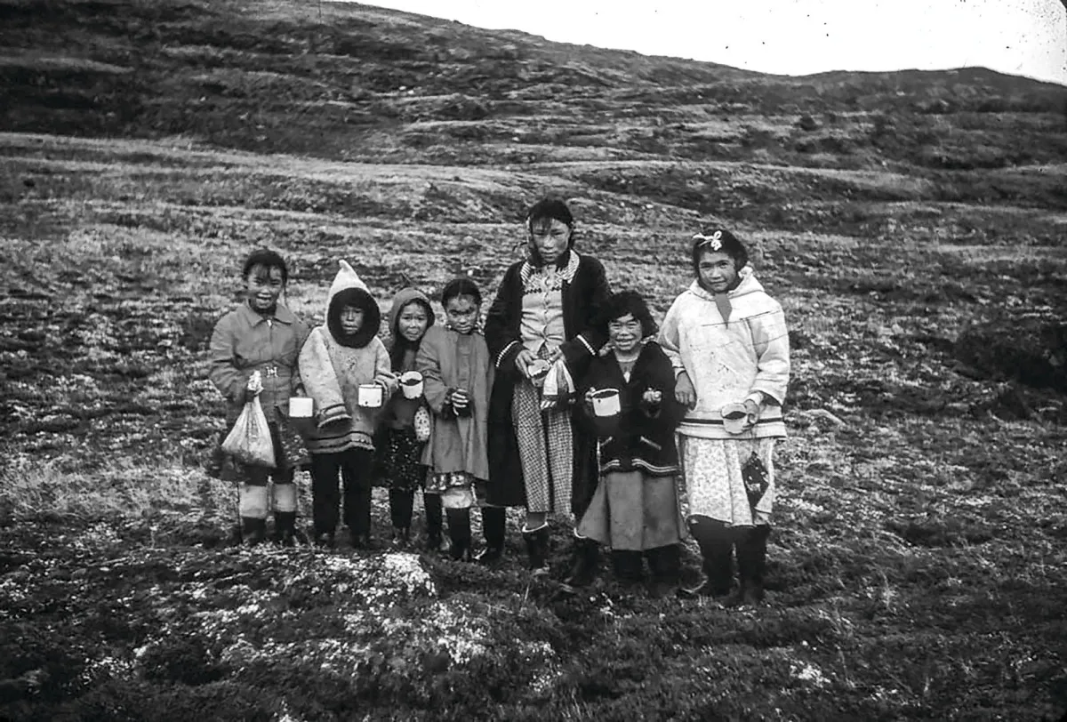 GROUP OF INUIT CHILDREN PICKING BERRIES, 1956. LIBRARY AND ARCHIVES CANADA/ALEX JERRY SALEY FONDS/E011313644