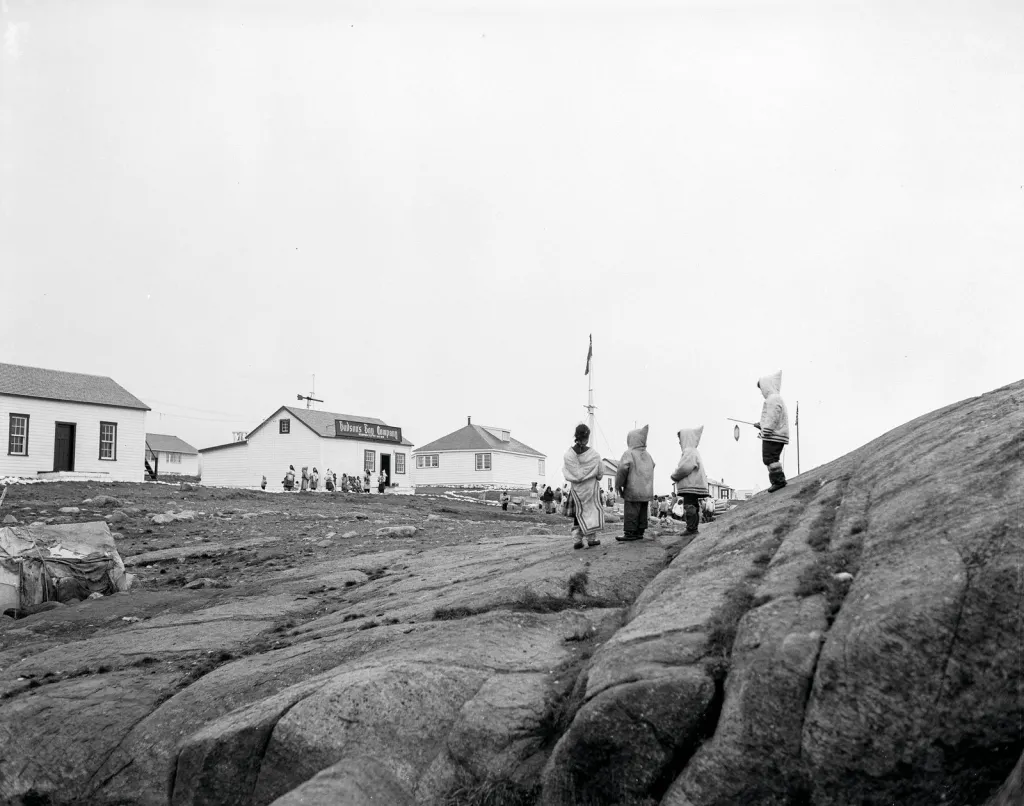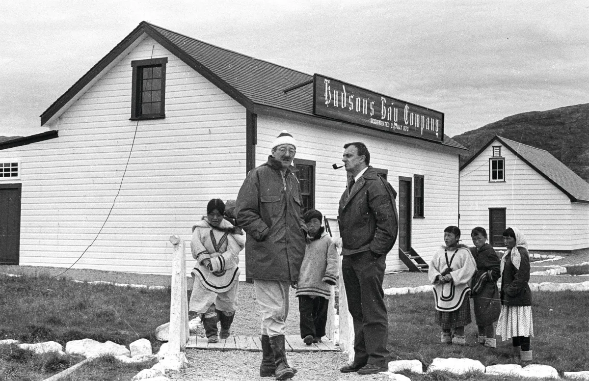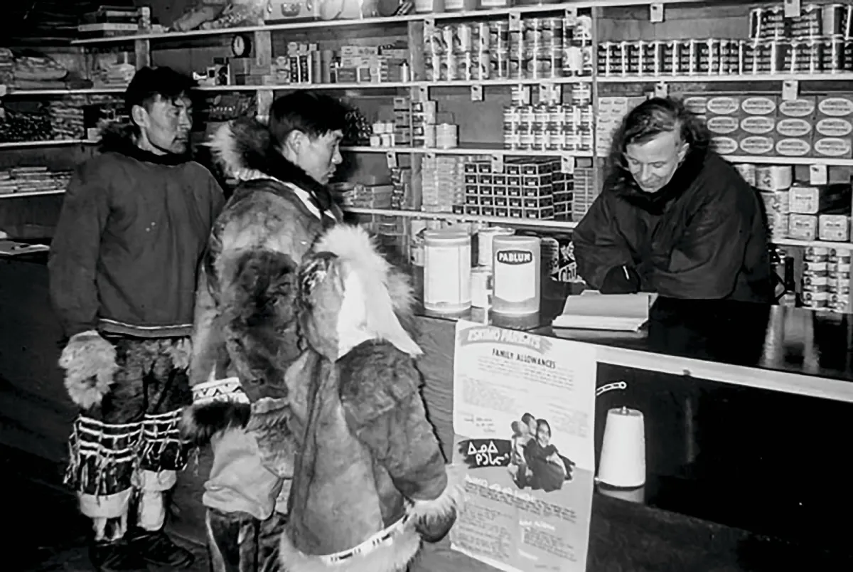 OUTSIDE THE HUDSON’S BAY COMPANY POST, EASTERN ARCTIC, BETWEEN 1956-1960. © LIBRARY AND ARCHIVES CANADA. REPRODUCED WITH THE PERMISSION OF LIBRARY AND ARCHIVES CANADA. LIBRARY AND ARCHIVES CANADA/ROSEMARY GILLIAT EATON FONDS/E010836050