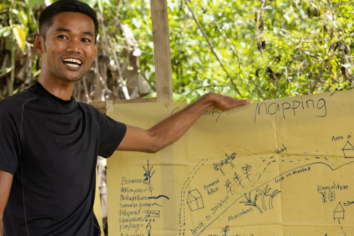 In one such session with local farmers, the group facilitated a “community mapping” activity. Using a couple of sheets of Manila paper and felt pens, farmers created a hand-drawn map of Santo Domingo. They drew their farms, the rivers, the mountains - their communities - from memory. From this, Salumayag asked them to share their observations of the landscape and the challenges that they face. These discussions then evolved into solutions - ones that came from the farmers themselves. These ranged from establishing native tree perimeter fences and rehabilitating water sources to switching to biopesticides.