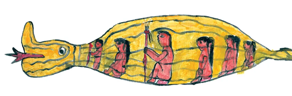 The theme of the sun and its cosmic, life-giving power runs through some of the Arrows, both in the narration and in the illustrations and hieroglyphic-style imagery. In particular, the second Arrow - titled The Sun and the Flower - explores different but complementary ways of thinking about the sun as the source of all life on Earth. It reconciles James Lovelock’s Gaia theory with Yanomami beliefs about the suspension of the sky and Soviet geochemist Vladimir Vernadsky’s 1926 book The Biosphere, which hypothesised that life is the geological force that shapes the Earth.