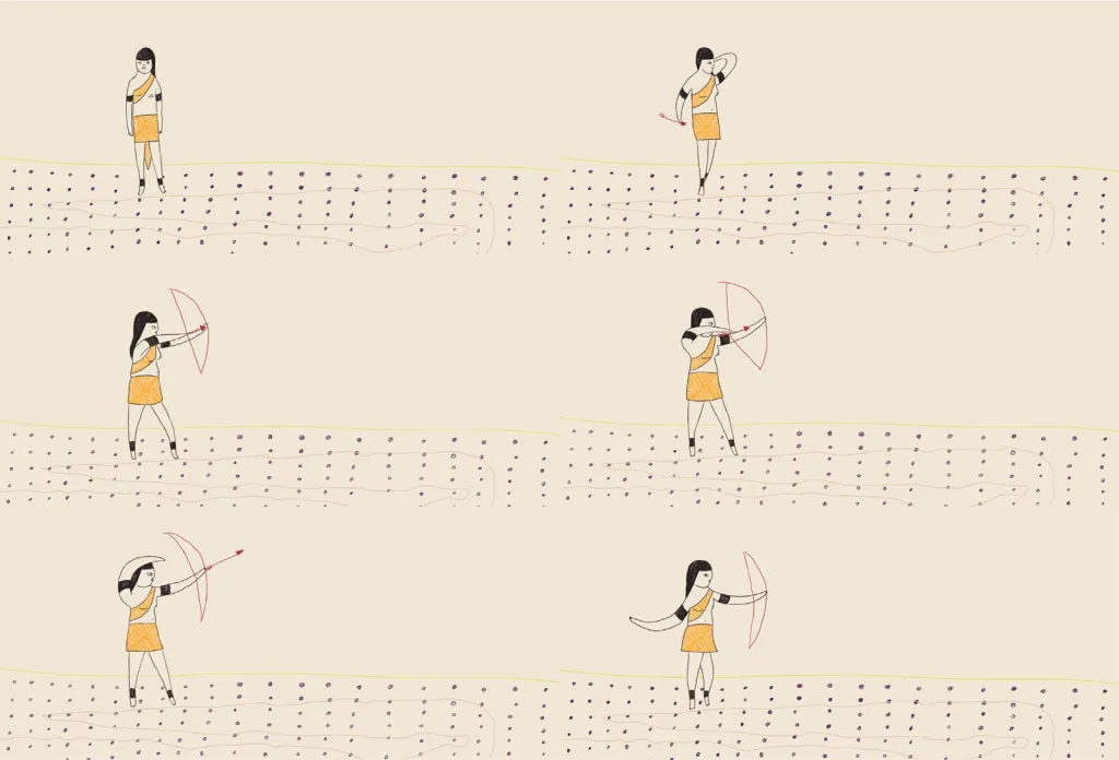 Several Arrows also incorporate a series of hieroglyph-like pictograms, drawn from a mixture of Indigenous and historic cultures, incorporating images from religious symbology, petroglyphs and artworks. They suggest a universal attempt to use symbols to make sense of the world and to imagine the patterns by which ecosystems are woven through human lives. The sources of the images, extra information, and suggestions for further reading can be found in the PDF booklets that accompany each film, expanding the conceptualisation of the Arrows in multiple directions.