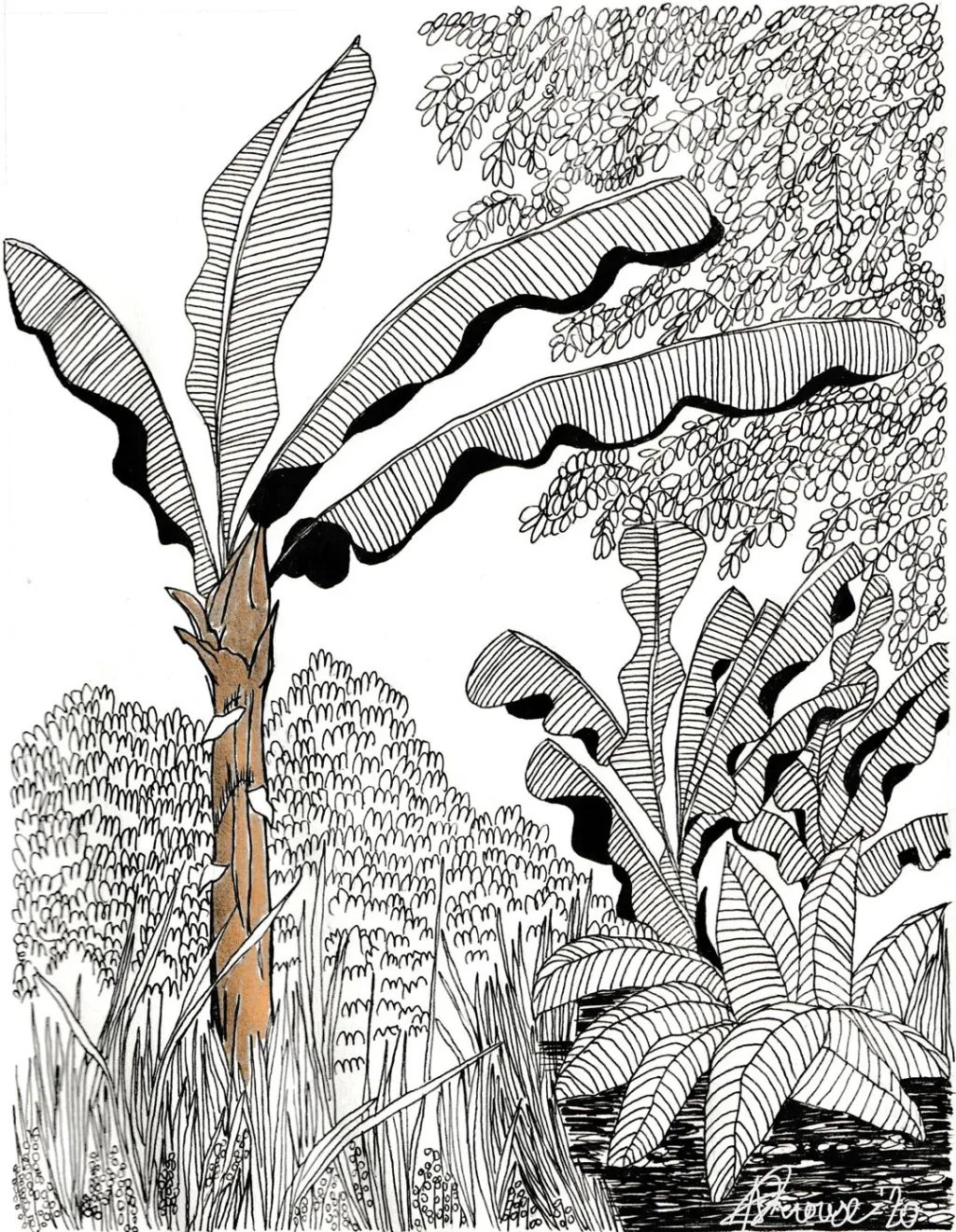 Amelia Rouse is from Barbados. While she studied civil engineering, her first love is illustration and she produces beautiful work in pen and ink with an emphasis on nature. She’s been illustrating for Where the Leaves Fall since issue #3.